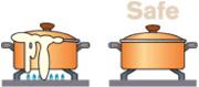 - 点火時に鍋を外すと弱火になり衣類の袖口への引火を防ぎます。